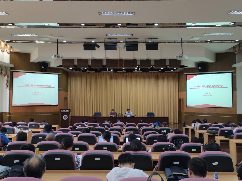 为深入学习贯彻全面从严治党新要求,夯实广大教职工政治理论基础,一以贯之推动全面从严治党,9月16日下午,威廉希尔体育联合电子工程公司邀请公司党委理论宣讲团成员、校纪委副书记汪守建作题为“一以贯之坚定不移全面从严治党”的专题报告。报告会由公司党委书记杨天华主持,两院教职工140余人聆听了报告。
