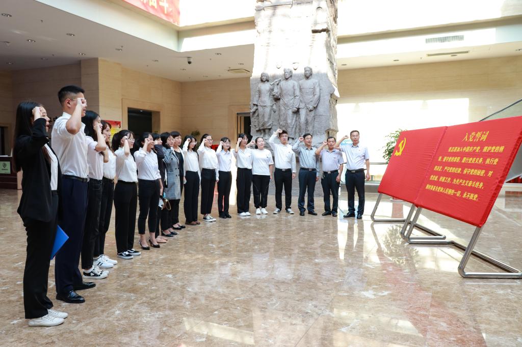 首先,在庄严的大厅里,面对雄伟的雕像和鲜红的党旗,全体党员认真听取了讲解员的整体介绍。紧接着,全体党员佩戴党徽、面对鲜红的党旗再一次庄严宣誓,重温入党誓词,重问入党初心。随后,大家按照先左后右、先下后上的顺序,陆续进入每个展厅,仔细观看烈士遗物和各种图片,认真阅读每一个激动人心的革命故事。在巨幅的油画和雕像前,大家还会就一些重要的历史事件展开热烈讨论,无不为先烈们不屈不挠的斗争意志以及崇高的革命信仰所感动。