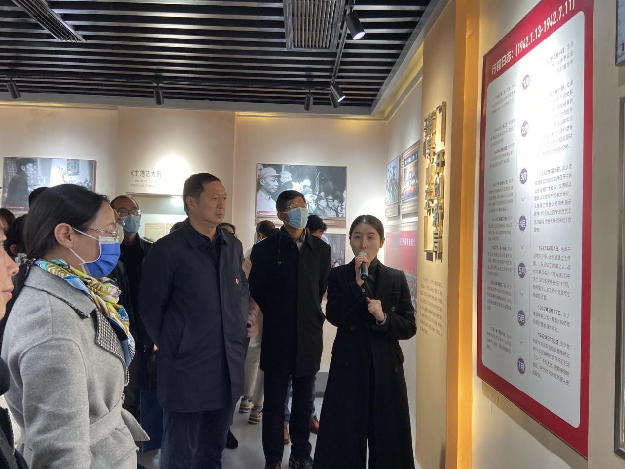 威廉希尔体育全体党员在万金店同志带领下走进一个个展厅,仔细观看展览,认真听取工作人员讲解。一幅幅图片,一张张图表,一件件实物,一段段视频,把同志们带回了近代以来跌宕起伏、波澜壮阔的难忘岁月。在反映当时革命形势的地图前,在刘少奇同志所著名篇《论共产党员的修养》的文献前,在广大革命群众翻身抗日的一件件历史照片和文物前,同志们不时停下脚步认真观看,详细询问和了解有关情况。