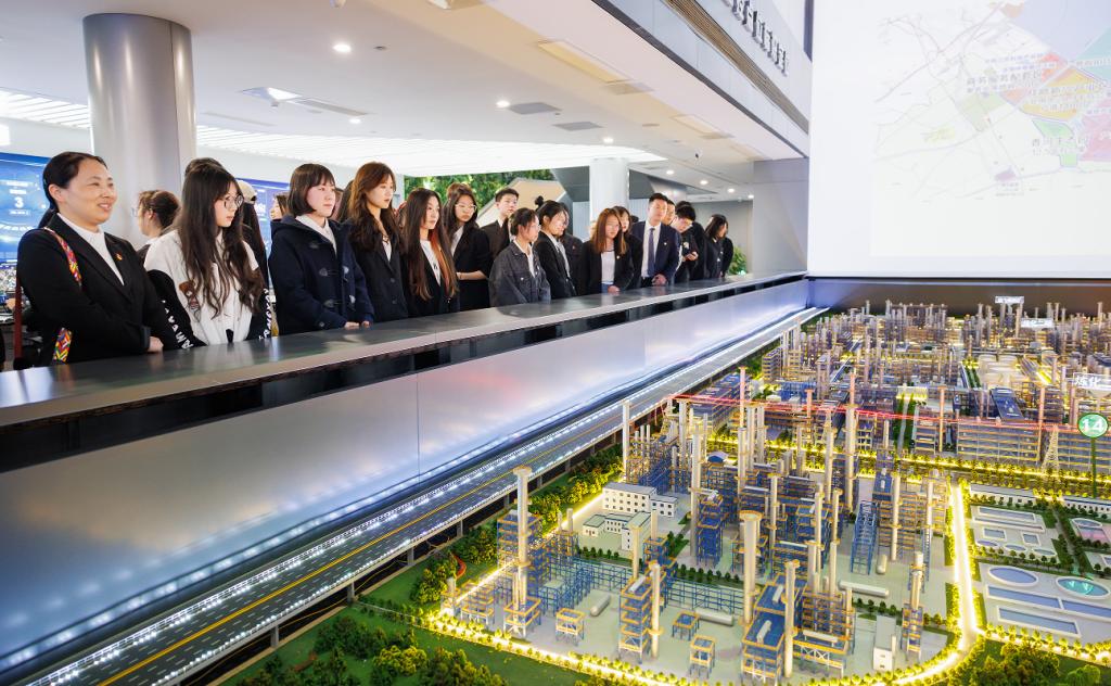 四月的徐圩新区,碧波涌动,春意盎然。师生党员同志们首先来到徐圩新区石化基地运管服务中心参观学习。大家仔细聆听了工作人员的讲解,了解新区发展总体情况和未来发展愿景并合影留念。