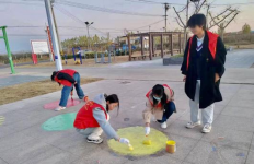 员工代表们用画笔和油漆对小广场进行布置,简单的地面逐渐变成孩子们游戏的小乐园。七彩的鱼、遨游星球的格子图……“彩绘乡村,乐享童真”,每一笔都饱含大家对孩童真挚的爱与祝福,落日余晖与孩童蹦蹦跳跳的身影勾勒出最美的剪影。