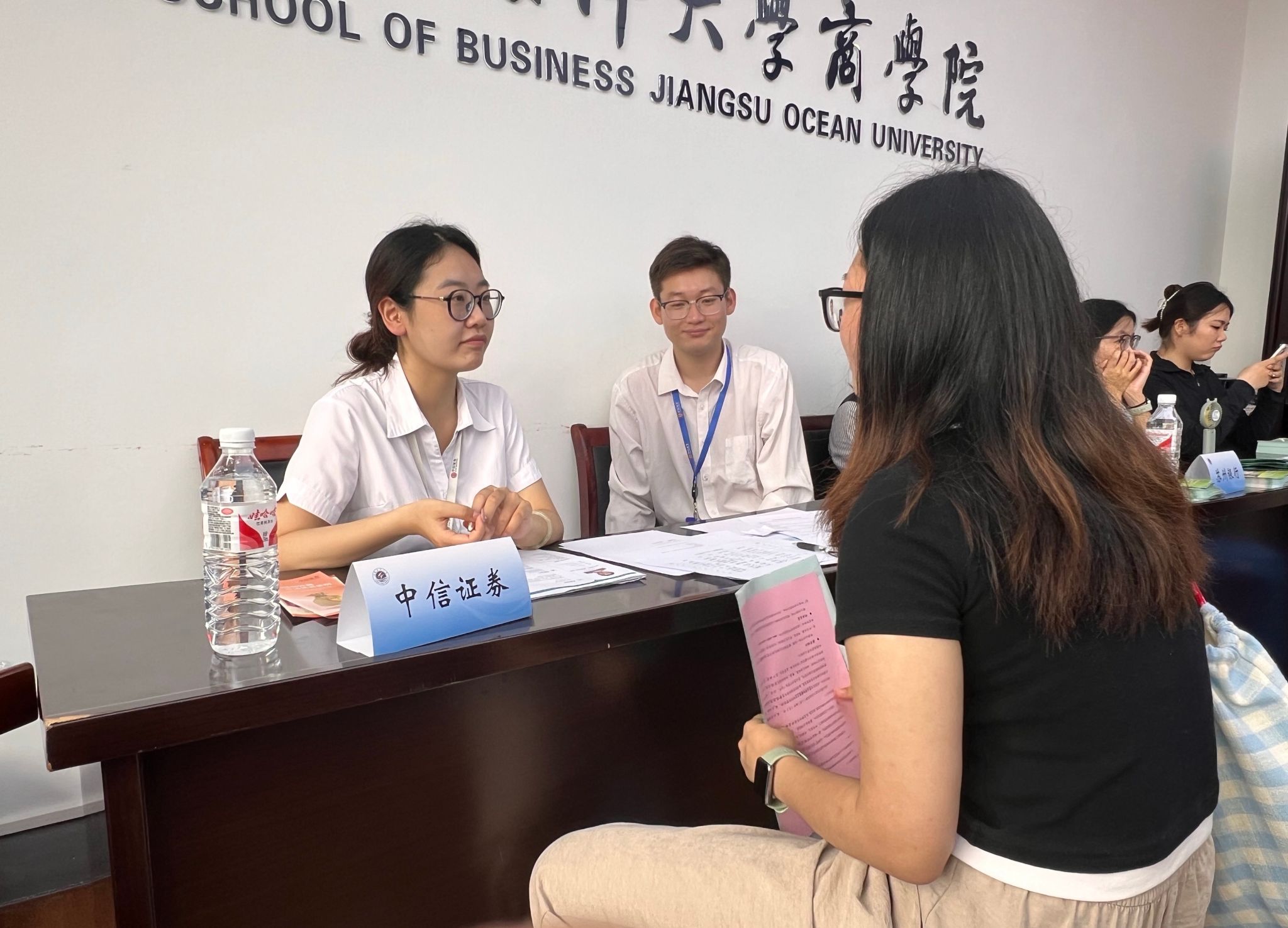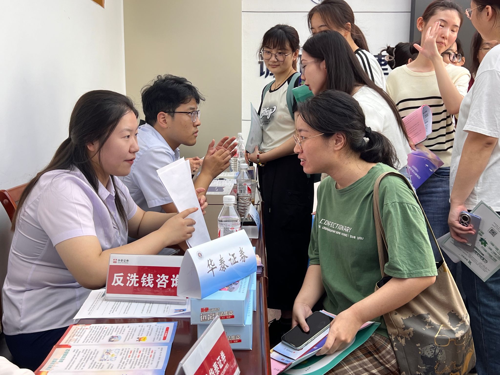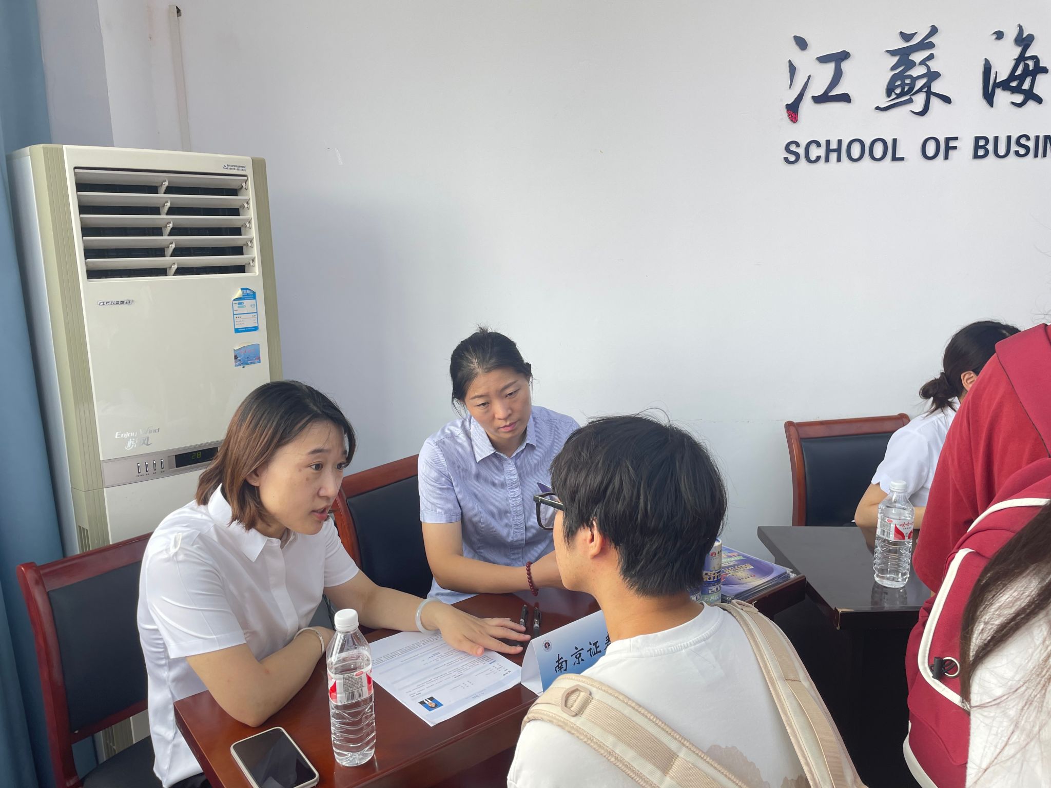 此次招聘会共有苏州银行、中信证券、南京证券、国联证券、招商银行、南京银行、民生银行、浙商银行、银河证券、江苏银行、华泰证券和链家公司等十二家企业参会,提供各类岗位100余个。2025届毕业生参加了此次招聘会。现场咨询和招聘工作热火朝天,员工积极投递简历,各金融机构积极推介岗位,成果丰硕。公司党委书记万金店热情地看望了前来招聘的用人单位。