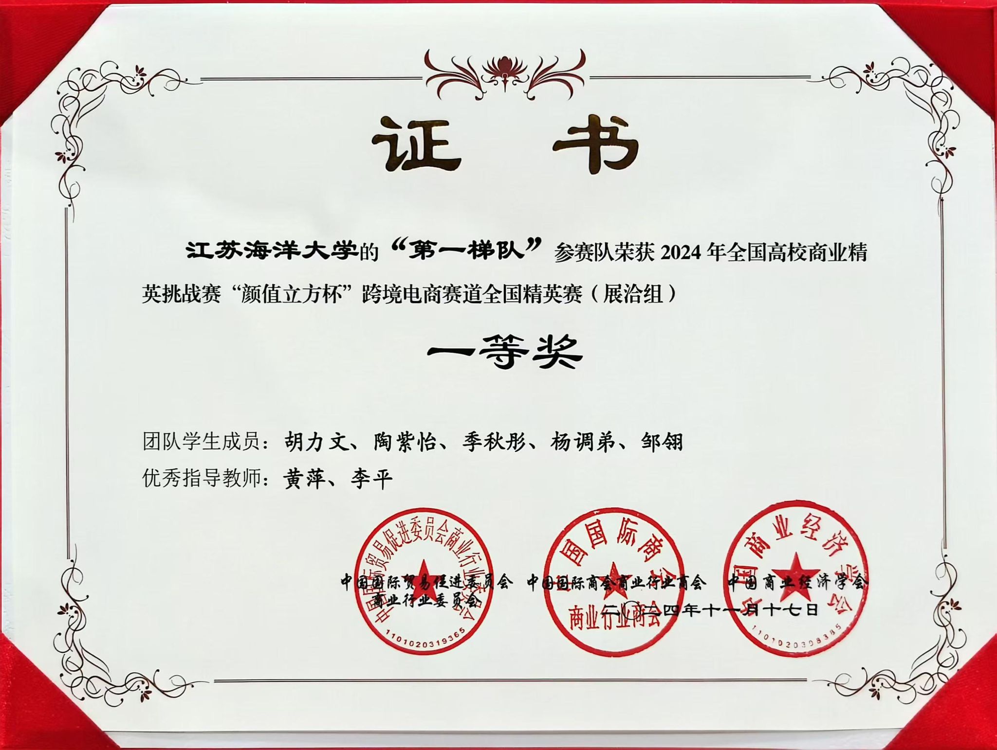 11月15日至11月18日,2024年全国高校商业精英挑战赛国际贸易竞赛“颜值立方杯”跨境电商赛道全国精英赛在广东省东莞市举行,由威廉希尔体育金融学系黄萍,李平老师带队,金融学专业胡力文、季秋彤,物流管理专业陶紫怡、杨调弟、邹翎五位同学组成的“第一梯队”团队荣获全国总决赛最佳院校组织奖、全国精英赛精英奖和全国精英赛(展洽组)一等奖。