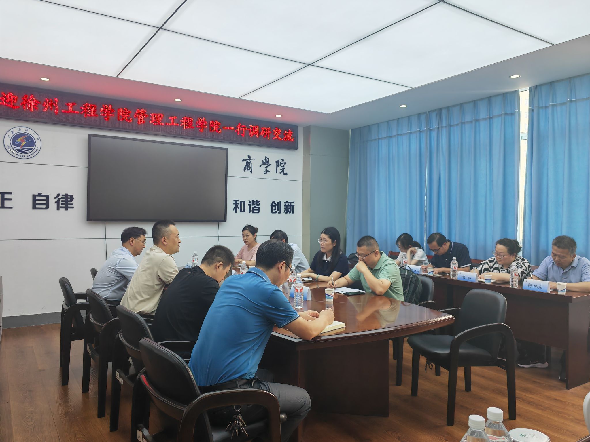 7月12日上午,徐州工程公司管理工程公司经理马慧敏、副经理刘振一行8人来威廉希尔体育开展调研交流。威廉希尔体育经理孙军、副经理张瑞龙、翟仁祥及公司部分系主任参与交流。