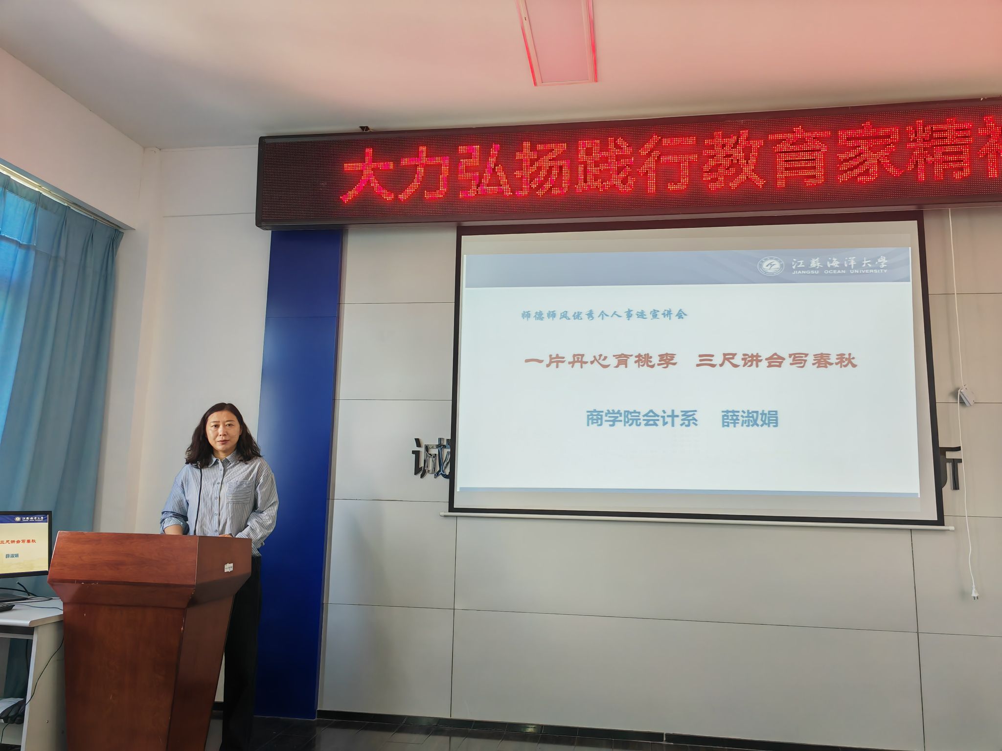 学习会上,2023年度校师德师风考核优秀等次获得者薛淑娟老师以“一片丹心育桃李 三尺讲台写春秋”为题,为全院教师进行了师德师风先进事迹主题宣讲。薛老师从传道树德坚守初心担使命、勤勉敬业躬耕教坛履职责、真心实意满怀关爱育员工三个方面介绍了如何以教育家精神为引领,履行教书育人使命的优秀事迹。与会老师均表示深受启发。