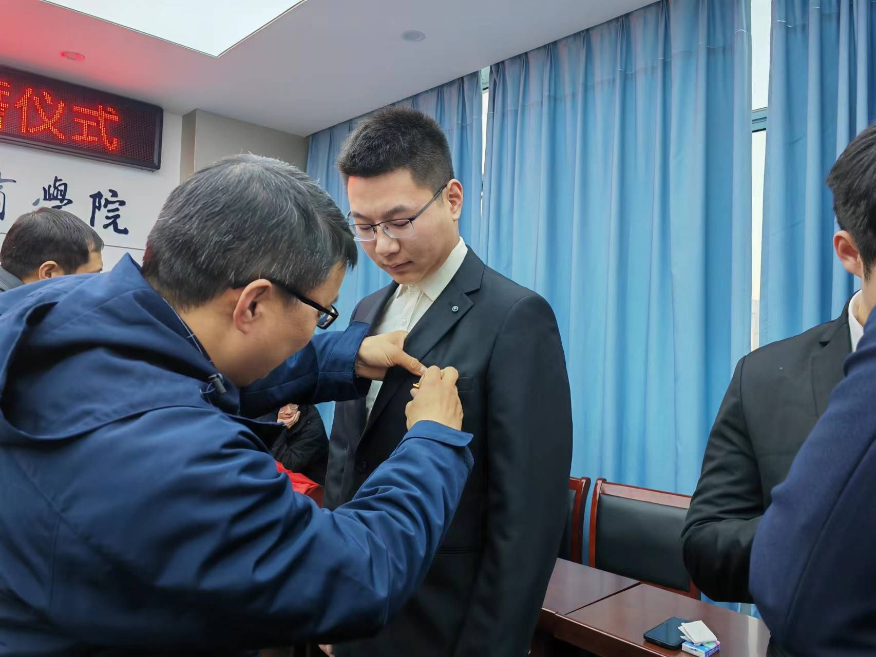 王智金首先宣读了本次30名新发展党员名单,并提醒同志们谨记政治生日,提升党性修养,增强作为一名共产党员的责任感和使命感。紧接着,由院领导及支部书记为新发展党员佩戴党员徽章。