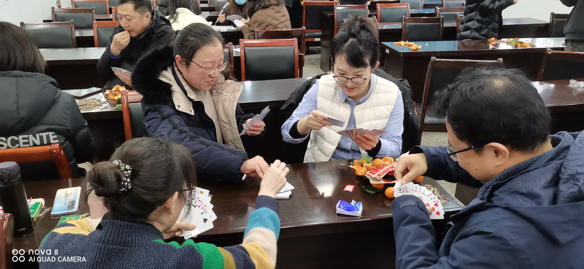 教职工齐聚大会议室,两两组合,他们彼此配合默契、斗智斗勇,充分施展了高超的牌技,现场氛围热闹而和谐,欢声笑语不绝于耳,大家在比赛中相互了解,比赛现场成为他们相互交流的纽带和共同学习的平台。