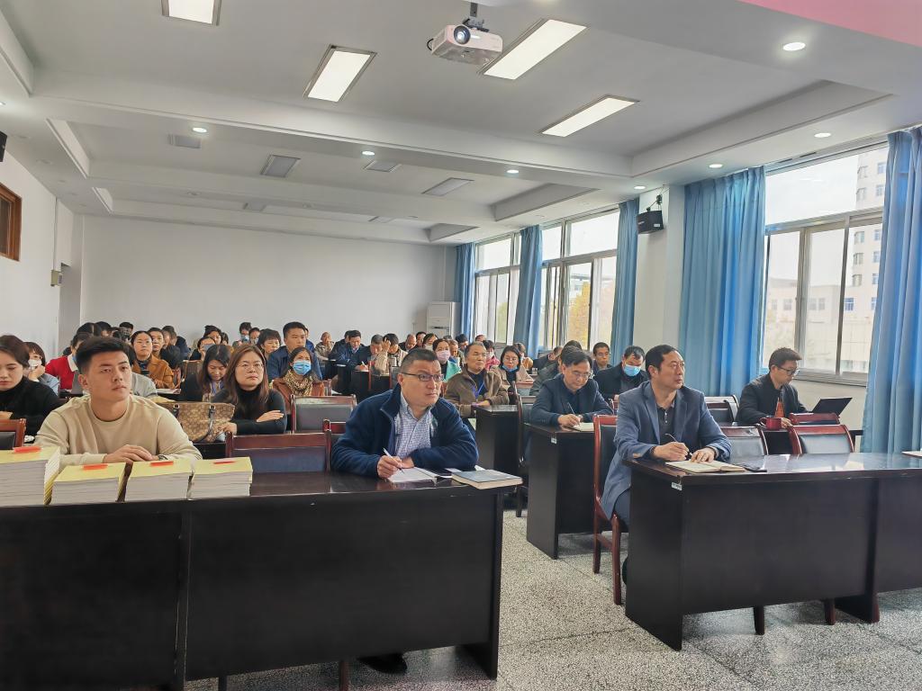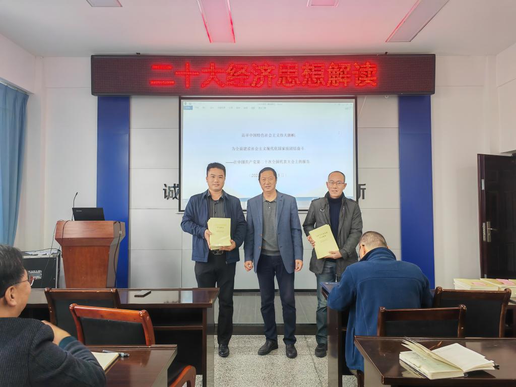 此次学习活动共有两个议程。一是公司党委书记万金店同志向各个系和各部门颁发学习教材——《习近平经济思想学习纲要》。万书记号召全体教职员工一定要结合自身的专业、特长及研究方向,认真学习、勤行思考、深刻领悟,努力把二十大经济思想落到教学、科研和社会服务的实际工作中,力争在中华民族伟大复兴的时代洪流中做出成绩、做出特色、做出贡献,不负党的重托、不负人民的期待、不负时代所赋予的历史担当。