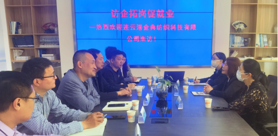 为了深入落实就业工作,保障毕业生更充分更高质量就业,2023年5月9日,公司领导班子在海洋经济研究院会议室接待了来访的连云港金典纺织科技有限公司总经理王丽萍一行,外国语公司党委副书记陆文前参加了座谈。促进优质企业来威廉希尔体育交流是威廉希尔体育深入贯彻落实国家和江苏省关于高校毕业生就业工作的决策部署、开展“访企拓岗专项行动”、促进毕业生高质量就业的重要举措。