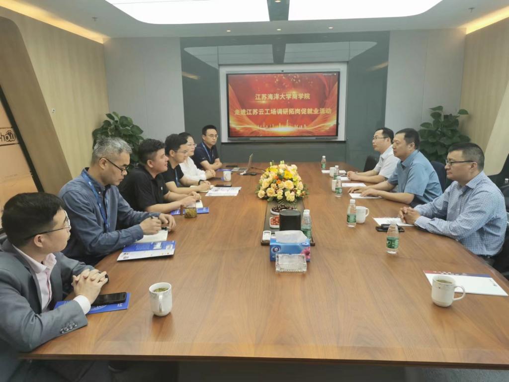 考察团还先后前往员工企业中汇会计师事务所、汇业律师事务所和江苏云工场信息技术有限公司现场调研。三家员工企业的负责人荆跃飞、吴颖婷和孙涛分别接待了考察团,通过员工的介绍,考察团了解到员工们创业的艰辛,以及取得的成就,为员工们创业打拼的精神所感动。考察团还跟员工企业就产教融合、实习基地共建、助学助困、就业招聘等工作达成合作意向。