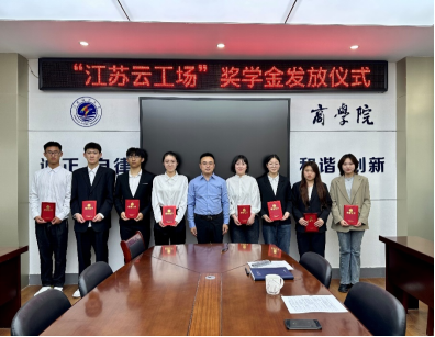 仪式前,全场以热烈的掌声欢迎季黎俊的来访,党委副书记王智金表达了对江苏云工场信息技术有限公司的感谢,他说在高校设立奖学金的举动充分展示了企业的社会责任感和对母校的反哺。接着举行了“江苏云工场”奖学金发放仪式,季黎俊为获奖同学颁发了证书,并进行合影留念。