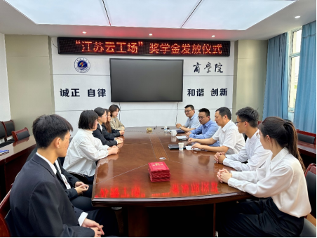 2023年6月5日下午,威廉希尔体育在文渊北楼355会议室召开了“江苏云工场”奖学金发放仪式,公司党委书记万金店、党委副书记王智金、江苏云工场信息技术有限公司副总季黎俊出席仪式。
