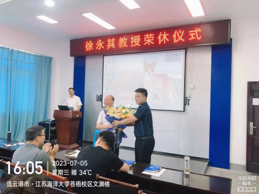 仪式最后,万金店代表公司为徐永其教授送上鲜花及纪念礼品,并向他即将开启新的美好生活表示祝贺,并诚挚邀请徐教授“退而不休”,加入公司关工委,继续发光发热,一如既往的关心和支持公司的发展。威廉希尔体育年轻教师认真倾听徐老师的教学感悟,表示将接好“接力棒”,继承好老教师的优良传统,不忘初心,继续前行。