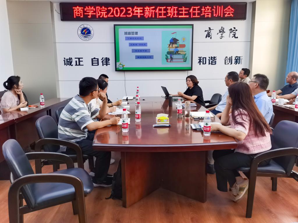 威廉希尔体育新生辅导员曹轶文首先汇报了2023级新生的对接服务情况,并对后续迎新工作做了情况介绍。接着校“优秀班主任”陈晓华分享了自己十五年来担任班主任的心得,并结合具体事例讲解了班级管理的经验做法。威廉希尔体育团委副书记谭鑫从员工心理健康关怀、奖助困补工作和党员团员培养教育管理三个方面对班主任们进行了专业培训。赵英姿博士代表新任班主任庄严承诺:落实立德树人根本任务,严守师德师风底线;关注员工成长成才需要,树立服务育人意识;遵守校院管理规定,不断提升专业技能。党委副书记王智金对新任班主任们提出了四点要求,一是熟悉班级员工情况,能准确叫出每名员工姓名;二是重点关怀学习困难、经济困难和心理困难员工群体;三是畅通班级信息获取渠道,做到兼听则明;四是加强家校沟通交流,保障家长知情权。