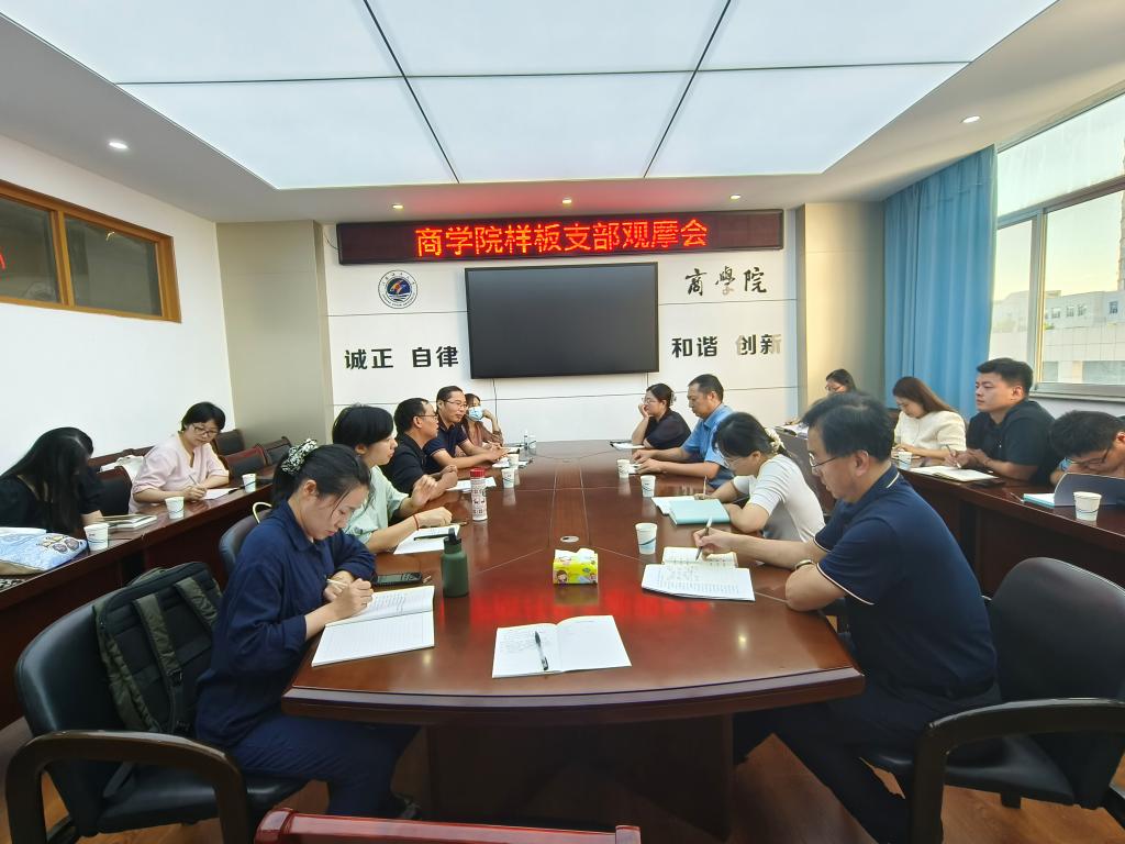 万金店首先对受邀嘉宾的到来表示热烈欢迎,并介绍了这次观摩活动的积极意义。会计与财务教工党支部书记王朋才介绍了全国样板党支部的创建过程,并从教育党员有力、管理党员有力、监督党员有力、组织师生有力、宣传师生有力、凝聚师生有力和服务师生有力七大方面总结了创建工作取得的实效。会上,王朋才还从政治学习制度创新、主题党日活动开展、专题党课以及支部共建活动、志愿服务活动等多方面介绍了支部主题教育活动的开展情况,全面总结了主题教育活动开展以来支部工作取得的突出成效,进一步明确了支部今后努力的方向。