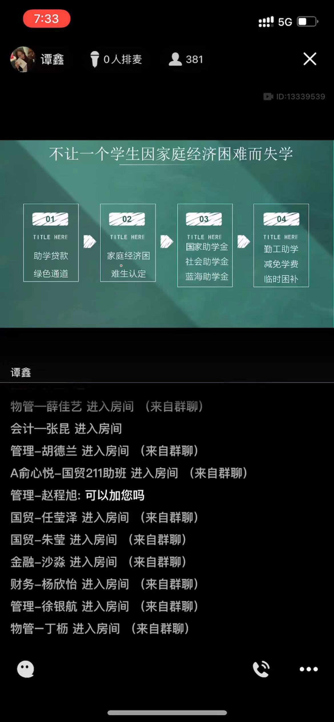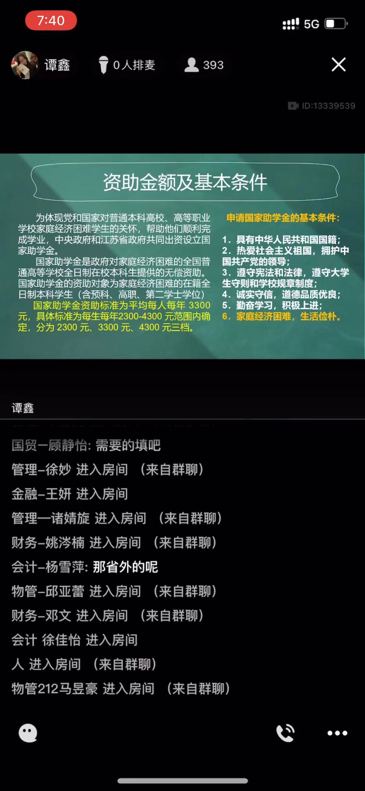 为在新生中普及资助政策知识,加强对新生的励志教育、诚信教育与感恩教育。2021年9月7日晚,威廉希尔体育举行新生入学评奖评优及资助教育线上讲座。本次讲座由辅导员谭鑫老师主讲,主题为《为梦想前行》,2021级新生全体线上参加。