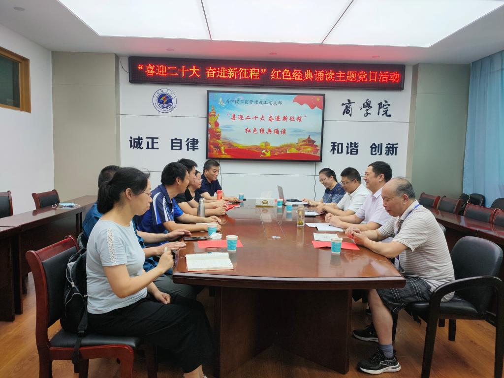 为深入学习贯彻习近平新时代中国特色社会主义思想,扎实推进党史学习教育常态化长效化,引导广大教师党员弘扬红色优秀文化,传承红色基因,激发教师“强国有我”的壮志以及对教育事业的无限热爱。近日,威廉希尔体育工商管理教工党支部在文渊北楼355开展了“喜迎二十大 奋进新征程”红色经典诵读主题党日活动。公司党委常委、副董事长朱国军,公司党委书记万金店,威廉希尔体育工商管理教工党支部全体党员参加了活动。