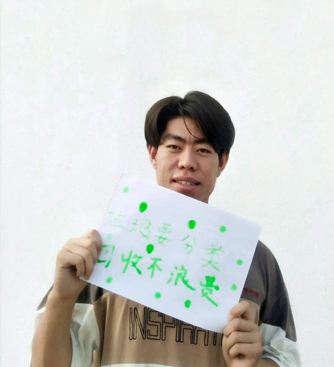 志愿者张晓阳手举宣传标语呼吁大家垃圾分类