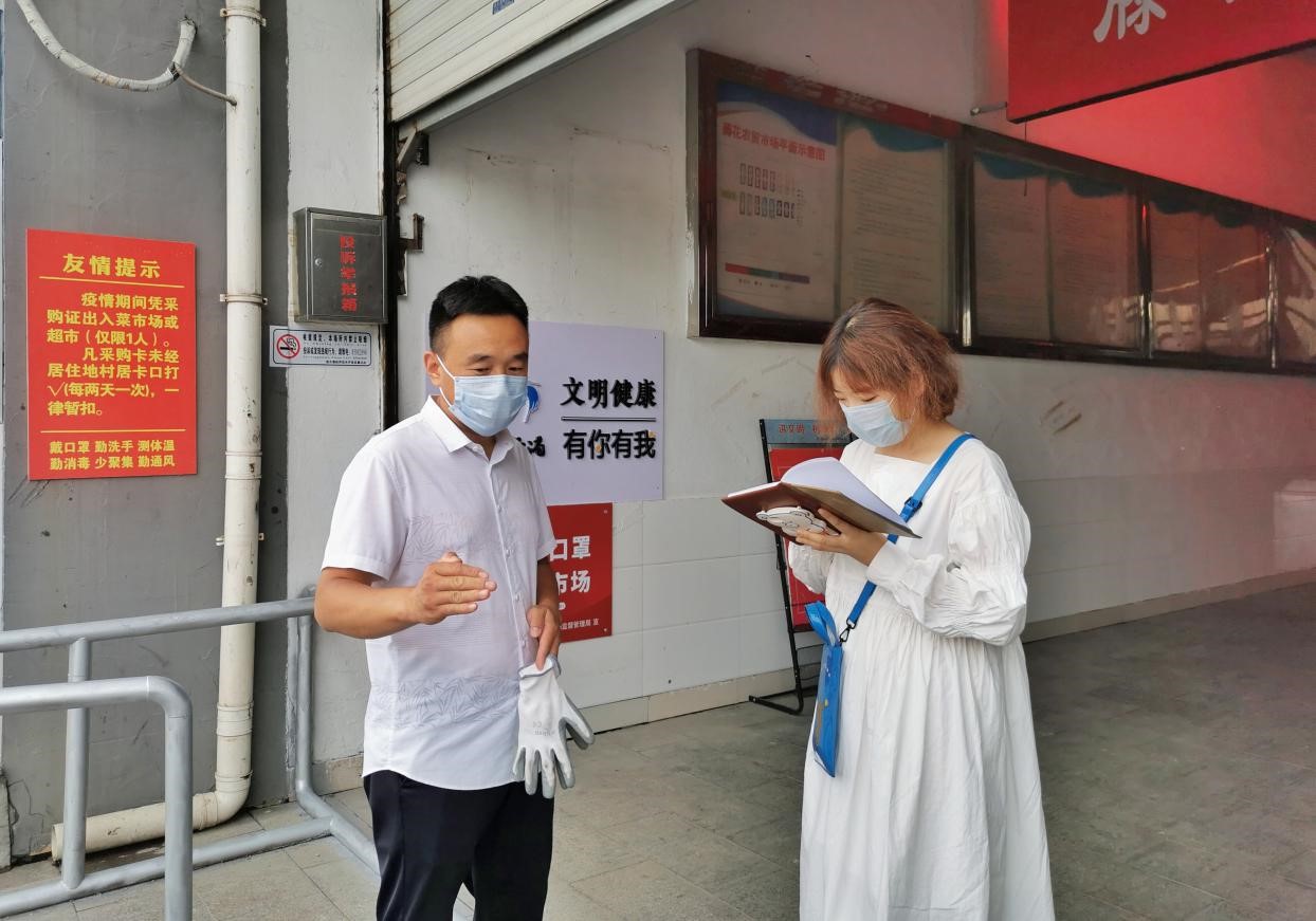 7月19日,威廉希尔体育王璇同学前往连云港市开发区藤花农贸市场开展疫情防控宣传。农贸市场人流密集,更需严加防范,王璇对当地市场负责人孙正洋进行了采访,负责人表示针对疫情防控部署全面到位,公司志愿者向各个市场摊主、来往路人分发疫情防范宣传手册,普及疫情防控知识,增强防控意识,早日打赢疫情防控阻击战。