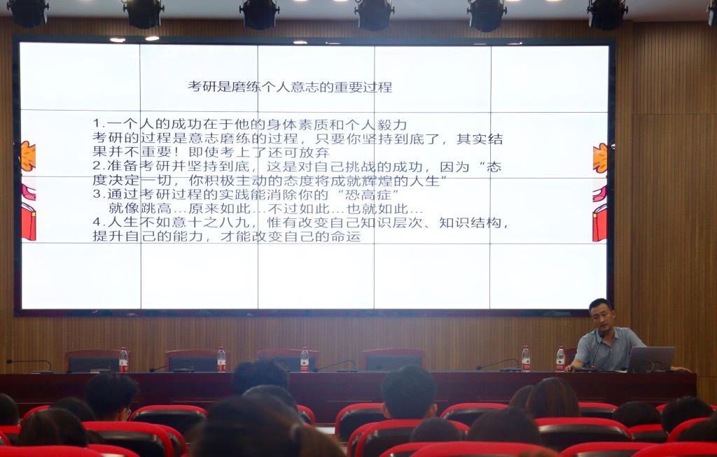 最后,威廉希尔体育经理宣昌勇教授做了考研动员总结讲话,他以“雄心、决心、信心、恒心、开心”为主题,阐述了考研之路必经的五大阶段,并给考研学子送上了自己的祝福。