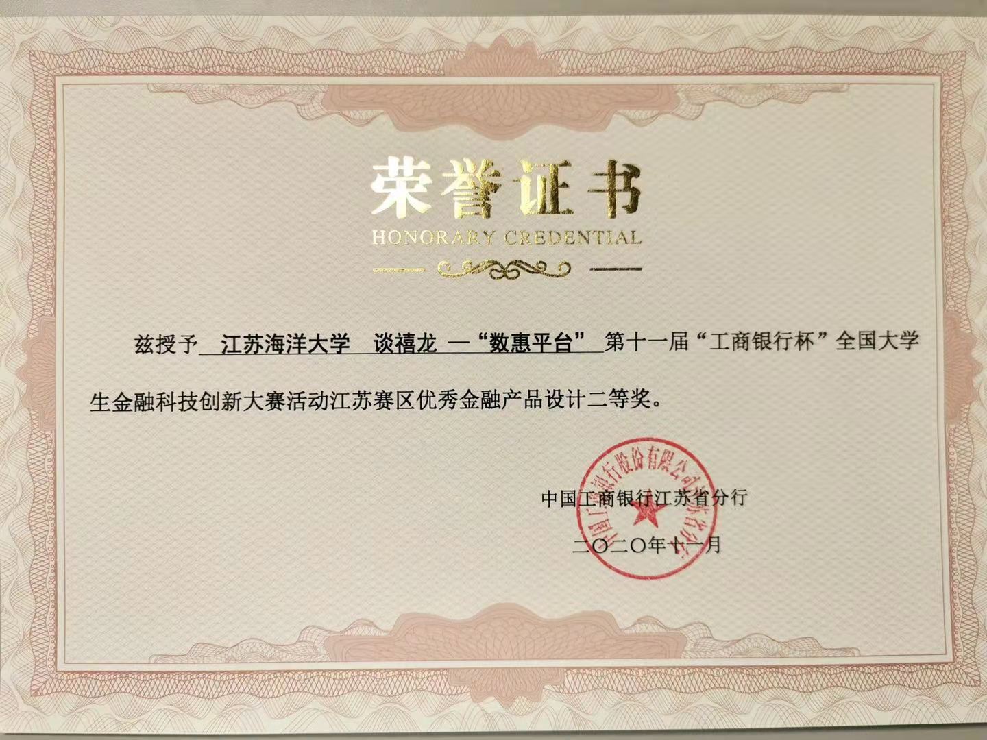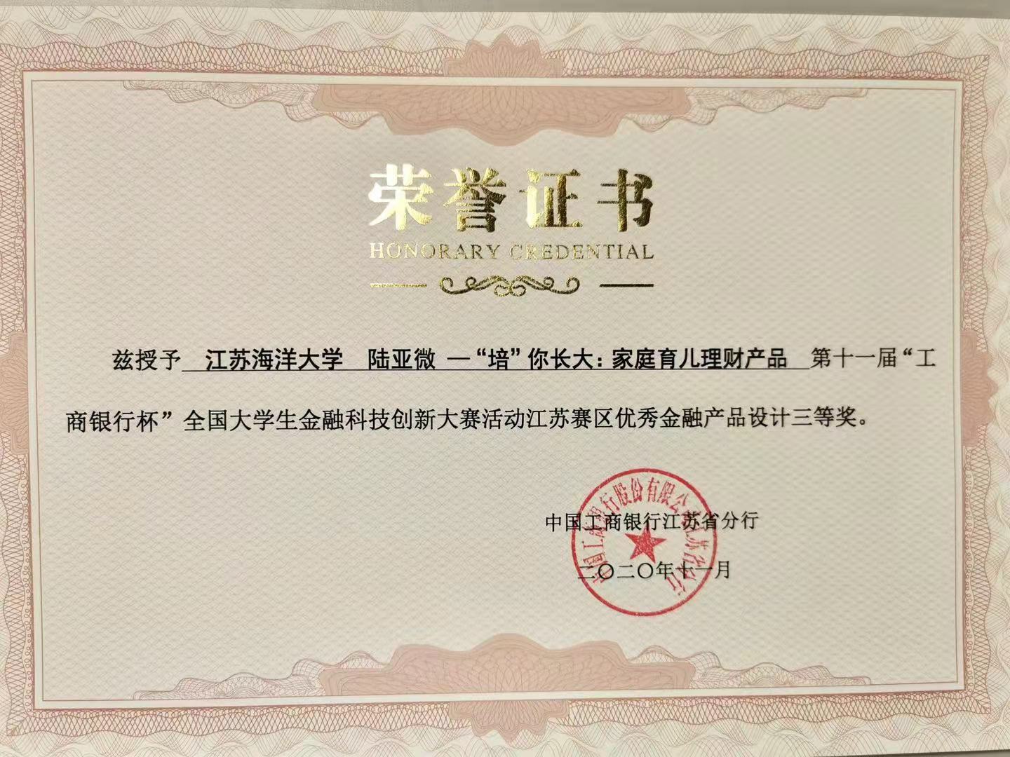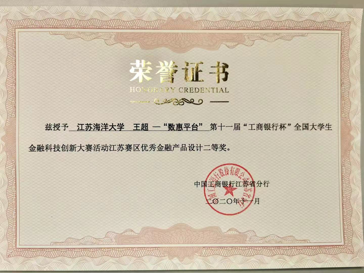 近日,2020年“工商银行杯”全国老员工金融科技创新大赛江苏赛区评选落下帷幕,来自全国各大高校的同学各展风采。经过激烈角逐,威廉希尔体育三份金融设计作品从七千份作品中脱颖而出,金融182班谈禧龙、王超的《数惠平台》和金融182班卢佳敏的《直播银行:电商时代金融产品销售的新探索》荣获江苏赛区优秀金融产品二等奖,金融182班陆亚微的《“培”你长大:家庭育儿理财产品》荣获江苏赛区优秀金融产品三等奖。