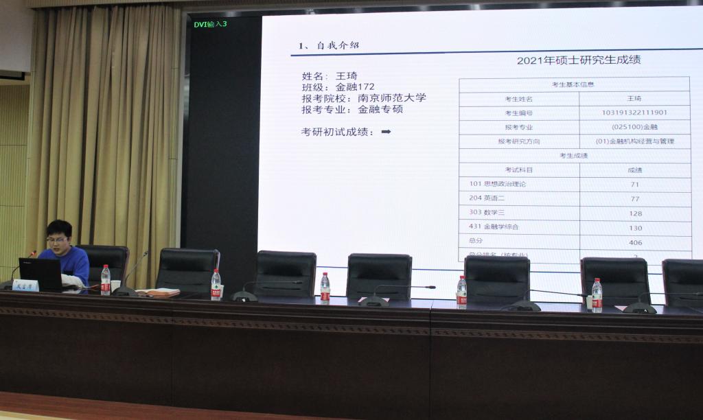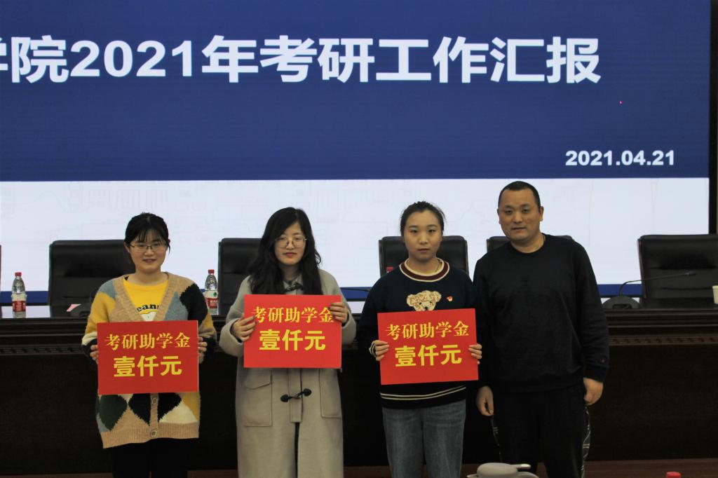 党委副书记王智金汇报了2021年威廉希尔体育考研工作,他指出考研结果是学风建设的核心指标,是公司考核二级公司的重要指标,也是人才培养效果的验证指标,他鼓励商院学子把考研之路坚持到底。连云港文都董事长王赛为研究生代表颁发了奖金,对成功录取的同学表达了祝贺。录取2021年硕士研究生的三位优秀代表分享了自己的考研心得。物管172鲁宝怡对如何选择恰当的公司、如何调整复习的计划以及如何调整心态谈了自己的感想,她认为考研前做出精准的选择可以收获事半功倍的效果。国贸171秦晨晨从为什么选择考研 ,如何选择适合的目标院校,为什么选择本校三个方面做了经验分享,她认为良好的心态是考研过程中不可或缺的条件。金融172王琦则十分细心地分享了他的考研“干货”,他推荐了每一门科目中较好的网课资源,介绍了每一位授课教师的风格,他还展示了备考期间一整年的时间规划,强调自律和高效是极其重要的。听了学长学姐的分享,参会的同学们受益匪浅。物流与营销系主任张得银老师作了考研动员发言,他指出部分同学考研目的不明、认识不清、态度不端正,并对此提出了三步走的对策:选对、选准和选好公司和专业,做好考研的准备,充分掌握答题技巧与策略。