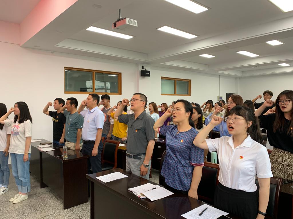 2021年6月29日下午,为了隆重庆祝中国共产党成立100周年,激励广大党员坚定理想信念、牢记责任使命,公司党委在文渊北楼357会议室进行新党员入党宣誓暨党史学习教育专题党课,公司党委书记万金店、副书记王智金、全体员工党支部书记及2021年新发展党员参加。大会由王智金副书记主持。