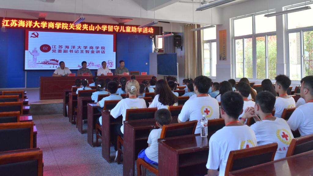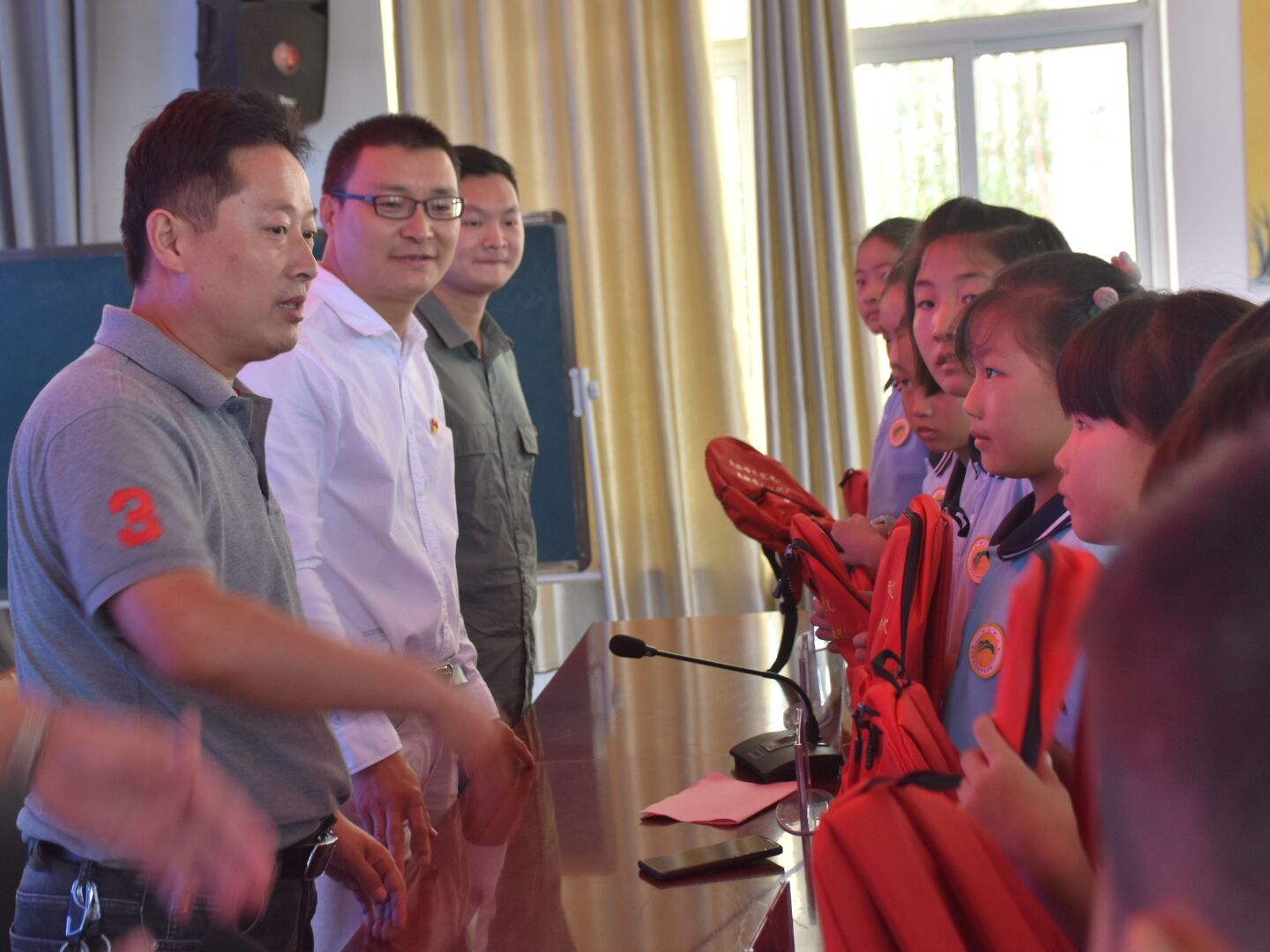 王智金做了“赓续红色血脉,需要青春力量”的主题发言。他说新时代是奋斗者的时代,生逢盛世当不负盛世,将拼搏奋斗的青春力量汇聚在一起,必将书写义务教育更新更美的篇章。以史为鉴、开创未来,要用历史滋养青年、启迪青年、引导青年。他希望志愿者们要教育小员工们明白过去我们为什么能够成功,弄清楚未来怎样才能继续成功,从而更好地将青春奋斗融入党和人民事业中。赓续共产党人精神血脉,走好‘脚下路’,坚定‘未来路’,是红色青春的价值所在。参会人员为小朋友们发放书包,并合影留念。书包上醒目地印制着“致敬百年党史,奉献青春时代”两句话,凸显着本次红色力量暑期社会实践活动的主题。