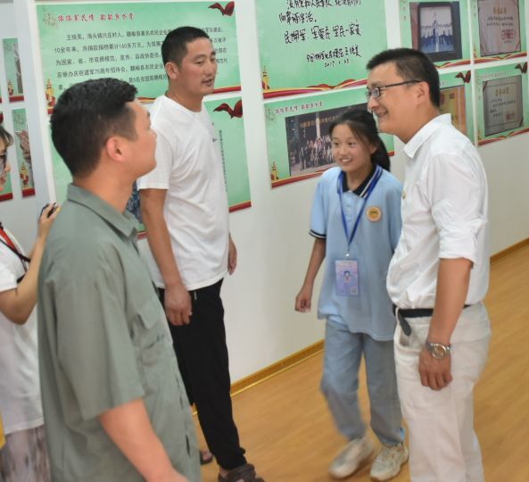 师生最后一起参观了抗日山小学国防馆。四个展厅的主题分别是“巍巍抗日山,浩浩中华魂”、“猎猎秋风志,拳拳报国心”、“依依军民情,款款雨水意”、“闪闪童星照,冉冉中国梦”。在小小解说员的解说下,志愿者们对赣榆的红色党史有了更多的了解,也印证了“致敬百年党史,奉献青春时代”的初心!