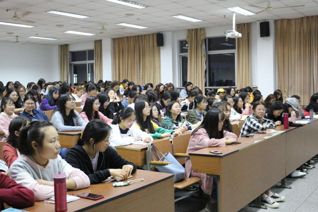 首先,程雪老师从女生的心理特征出发,引出了关于女生在大学中如何适应学习、生活和恋爱的话题,激发了在场同学们的思考。随后,程老师结合自身经历,列举了女老员工的常见问题,并就四个方面进行更深入的阐述。关于学习,她提出第一步是要主动寻找志同道合的朋友,获得同伴的帮助、关心以及并肩作战的快乐;第二步是要建立高阶深入的学习体系,学会自律,扩展阅读领域,培养自己的逻辑思维能力和分析问题的能力。关于生活,她指出要发展并延伸自己的爱好,变业余为专业。对于恋爱,她谈及我们要学会分辨,树立正确的恋爱观,接纳能够让自己变得更好的人。她以生动鲜活的案例和同学们强调,女生要在感情中端正自己的位置,懂得保护自己。最后,程雪老师鼓励女同学在大学里要明确自己的目标,时常自省,也呼吁女老员工们提高安全意识,做到警钟长鸣。