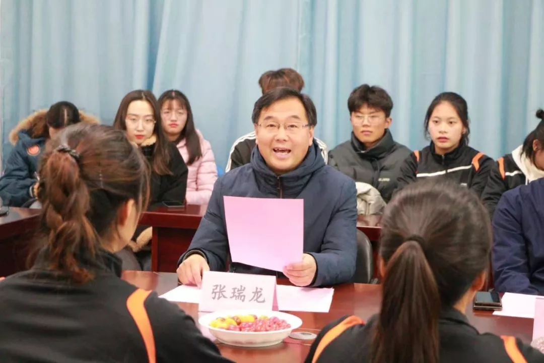 会议伊始,张瑞龙副经理宣布了表彰决定,对20余名排球队队员进行表彰,同时也鼓励他们要秉承不怕苦不怕累,顽强拼搏的精神来面对学习生活。随后他又宣布了应届毕业生的退役决定,在表达祝贺的同时也要求他们在今后的学习生活中发扬女排精神,勇敢面对困难。在此之后四位老师向全体队员们颁发了奖牌并与他们进行了亲切的问候。