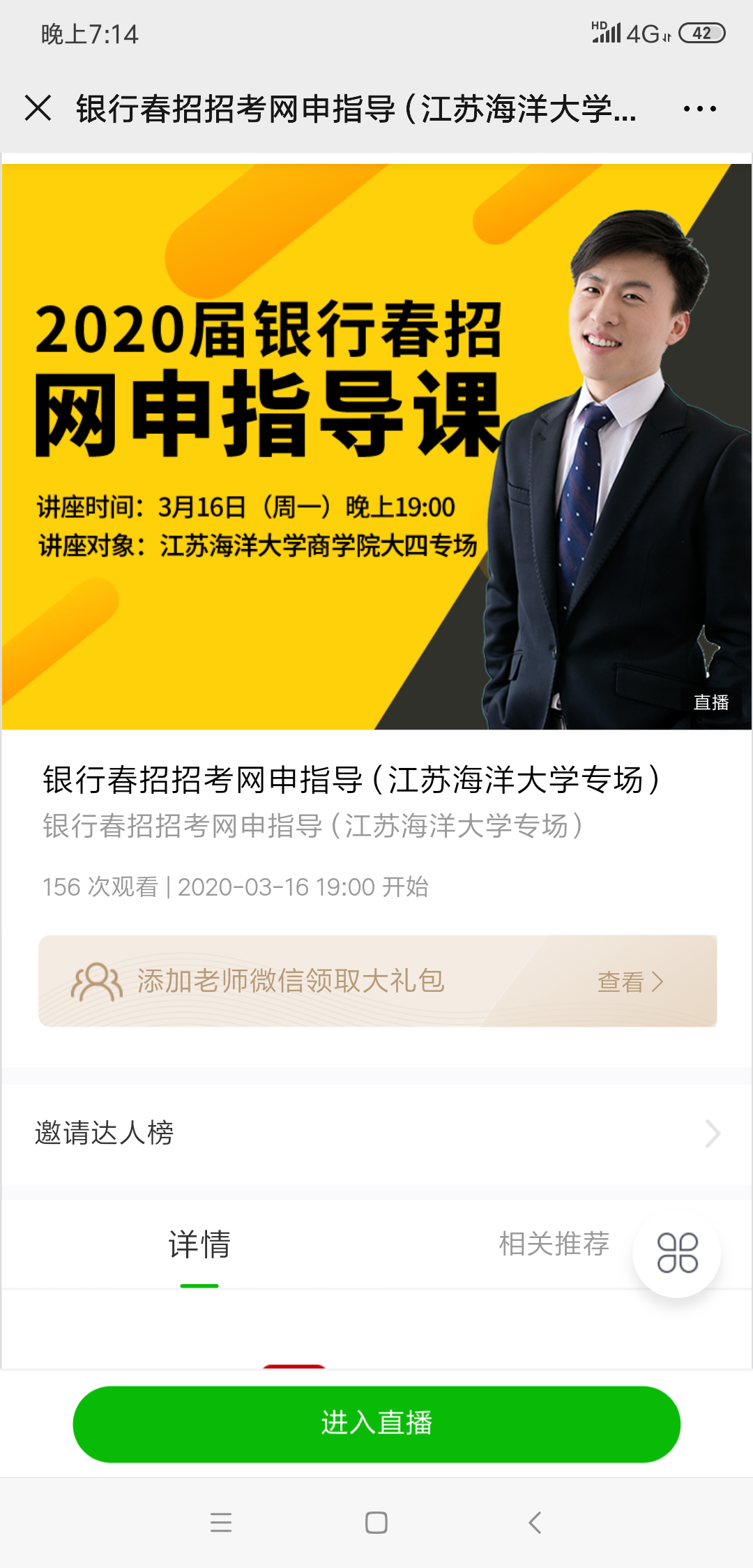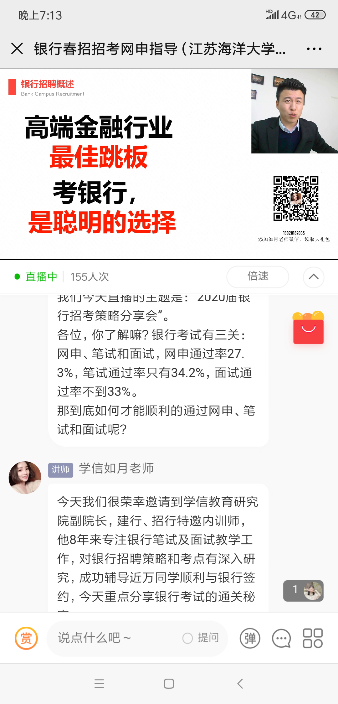 受经济下行压力和新冠肺炎疫情叠加影响,社会用人需求不确定性增大,地区、行业、专业、学历层次间的就业不平衡加剧,就业形势更加复杂多变。为贯彻落实习近平总书记在统筹推进新冠肺炎疫情防控和经济社会发展工作部署会上的重要讲话以及系列重要指示批示精神,按照《教育部关于应对新冠肺炎疫情做好2020届全国普通高等公司毕业生就业创业工作的通知》(教学((2020) 2号)要求,进一步推进公司2020届高校毕业生就业能力,公司于3月16日晚上19:00举办了银行春招招考网申指导培训会。本次专场培训会邀请了学信教育教育研究院副经理,建行、招行特邀内训师梅高翔主讲。