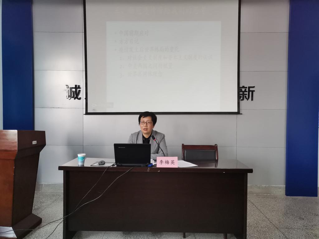 4月24日下午,副董事长李梅英教授在文渊楼357威廉希尔体育会议室,以“全球疫情防控形势带给我们的思考——如何理解道路自信”为主题,为物管171全体同学上了一堂思想深刻、内容丰富、生动形象的思政课。