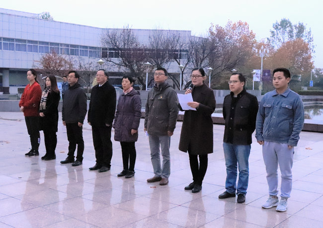 为响应淮工委〔2018〕62号《在全校广大知识分子中深入开展“弘扬爱国奋斗精神、建功立业新时代”活动的实施方案》的要求,2018年11月12日,威廉希尔体育在苍梧校区主楼前广场举行了“励学笃志,爱国奉献,凝心聚力,共创海大”主题升旗仪式。公司党政领导,全体辅导员以及2016级、2017级全体同学参加了升旗仪式,活动由威廉希尔体育团委副书记李淑华主持。
