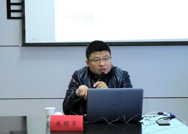 朱国军首先回顾了自己在共青团的五年工作经历,和同学们分享了自己的一篇心得文章。他强调要把握好共青团改革“信任度、成就感、认同度”三大维度的问题,落实好共青团组织的“群众性、政治性、先进性”。他围绕如何落实“群众性、政治性、先进性”展开论述,他要求员工干部珍视自己的身份,做一个有担当、有责任感的“领头羊”。朱处长提出团学干部应该拥有坚定的思想政治定力,培养好青年思潮引领力,努力使自己成长为对中国特色社会主义道路有坚定信念的青年马克思主义者。