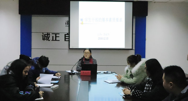 为进一步加强威廉希尔体育员工干部队伍建设,提升员工干部的技能水平和专业素质,12月10日下午5时,威廉希尔体育第十一期青马工程第三次培训于主楼606顺利举行。此次培训会主题为“员工干部的基本素质要求”,由威廉希尔体育团委副书记李淑华老师主讲,第十一期青马工程全体学员参加。
