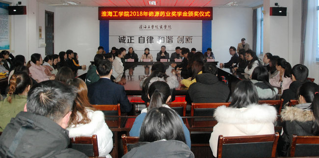 员工处处长朱国军宣读了《关于表彰淮海工公司2018年度“德源药业奖学金”表彰决定》。根据《江苏德源药业股份有限公司在淮海工公司设立奖学金评选办法》,经员工个人申请、公司审核并公示,张立平等45名同学获得了2018年度“德源药业奖学金”,共计9万元,奖金1000元至3000元。出席仪式的领导和嘉宾共同为获奖同学颁奖并合影。