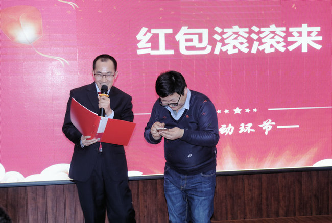 今年晚会的特色与亮点还体现在首次借助教学工具雨课堂完成了现场点名、产生幸运使者、发送节目弹幕、现场投票等环节。“红包滚滚来”作为幸运环节贯穿晚会始末,而其中由雨课堂随机点名抽取的十位幸运使者和“四十年四十首歌”——听歌识曲环节则是全场的焦点。晚会通过雨课堂现场投票的方式产生了2018年度关键字——“牛”,“‘牛’字既是对过去一年取得优异成绩的总结,也同音‘new’,预示新的一年里一切工作都有新的开端、新的收获”,文字提供者王凯老师这样解读。