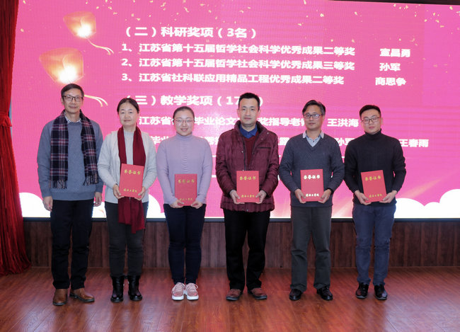 联欢会还有一个重要的环节就是颁奖,公司领导和颁奖嘉宾为年终考核各类优秀、科研获奖、教学获奖、学科竞赛获奖、以及在管理和各类类文体活动中表现突出的个人颁奖。