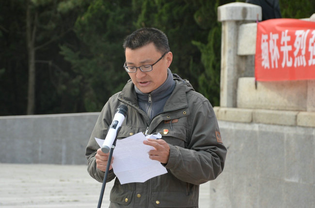 上午9时30分,祭奠革命烈士活动正式开始,师生党员们身着素衣、佩戴党徽与白花,列队整齐地肃立于安峰山事件烈士纪念塔前,向革命烈士敬献花圈之后,全体党员鞠躬并默哀一分钟,庄重地向烈士们表达了缅怀之情。
