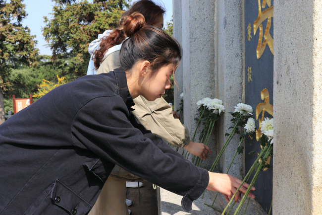 在庄严的国歌声中,全体人员手持白花,依次上纪念碑前献花并深鞠躬,向革命烈士致敬,默哀以表敬仰缅怀之情。接着国贸171班秦晨晨同学带领大家一起重温了革命烈士的丰功伟绩,同学们神情专注,认真聆听学习革命烈士的英勇事迹和高贵品格。