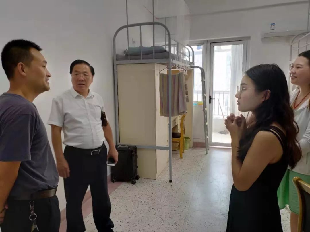 在迎新工作顺利结束之后,威廉希尔体育经理宣昌勇、副经理孙军、研究生秘书黄芳以及研究生辅导员周智超共同去宿舍楼慰问来自全国各地的研究生。在确认住宿条件能够完全满足新生日常生活学习所需之后,宣昌勇经理仔细询问了各位新生的家乡、专业,解答新生对于培养方向的疑惑,同时,对于威廉希尔体育首批自主培养的硕士研究生,他也提出了明确的要求,希望威廉希尔体育国际商务的研究生,在扎实专业知识、精进专业技能之后,能够乘着连云港国际自贸区的东风,施展个人抱负、展示威廉希尔体育学子风采。