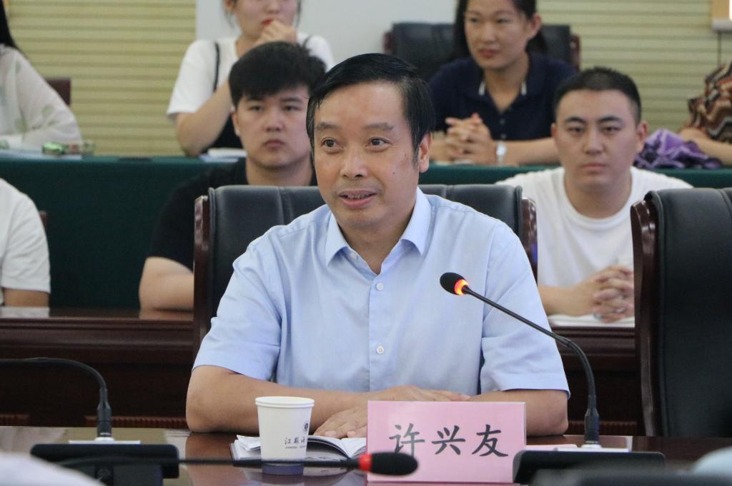 副董事长许兴友教授首先致辞,他对新生们的到来致以热烈欢迎,他对研究生同学提出了“身勤、口勤、腿勤、手勤”四“勤”要求,并希望导师们在工作生活中贯彻“热情、激情、深情、多情”四“情”标准。他建议新生们在之后的学习生活中时刻提醒自己不偏离“天道酬勤、地道酬善、人道酬诚、书道酬信、业道酬精、家道酬安”这六“酬”准则。