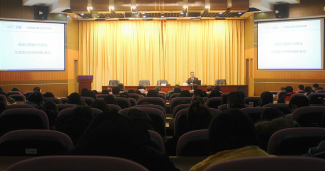 讲座主要围绕“国际市场营销学”展开,潘如龙董事长全面分析了市场营销——客户的购买过程。讲座开始时,潘如龙董事长引用孔子的一句名言诠释了市场营销的本质是知彼的过程,以此展开接下来的讲座内容。首先,潘如龙董事长用图解方法展示了市场营销包含三个部分:市场、销售、产品,这三者之间息息相关,又举例说明市场的重要性。接着又展示了图解客户购买过程,客户购买过程大体分为五个部分,潘如龙董事长先总讲了客户购买过程,讲述了移动互联时代下的线上/线下整合营销过程。最后,潘如龙董事长详细地给同学逐步拆解客户的购买过程。第一步:知道、认识—潜在客户;第二步:考虑—需求客户;第三步:倾向、决策—倾向客户 ;第四步:购买—消费客户;第五步:拥护—忠诚客户。潘如龙董事长客观展示了客户购买过程的每一步都是十分重要的,是逐步推进升级的,还告诉同学们学习就是为了以后更好的运用到工作上。