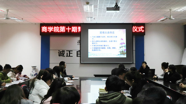 紧接着,公司党委书记杨天华老师为全体学员做了一场主题为“员工干部基本礼仪暨廉洁教育”为主题的讲座。杨书记向全体学员讲述了作为一个员工骨干所要具备的优秀品格与道德素养,从小事到大局一一给同学们介绍了为人处事,与人相处的基本礼仪。她提醒同学们要尊重他人,文明礼让,时刻注意谦逊得体的社会意义。杨书记还要求一个人要树立正确的世界观、人生观、价值观、利益观必须要注重自己的廉洁人生观建设,真正打牢思想政治基础,筑严思想政治建筑。在讲座最后,她祝愿在场的同学们能很好的规划人生,并通过此次青马班的学习,学有所获!学有所成!学以致用!