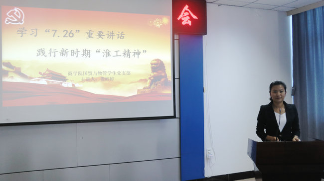 10月9日中午,公司党委在主楼606会议室举办了党课观摩会,这也是公司党委“三会一课”系列观摩会第二场,主讲人为国贸与物流专业员工党支部书记娄婷婷,主题为“学习‘7.26’重要讲话,践行新时期淮工精神”,公司党委书记杨天华、党委副书记张振松、党政办主任兰巍、各党支部书记出席会议,国贸与物流专业员工党支部全体员工党员以及其他员工党支部员工党员代表聆听了党课。