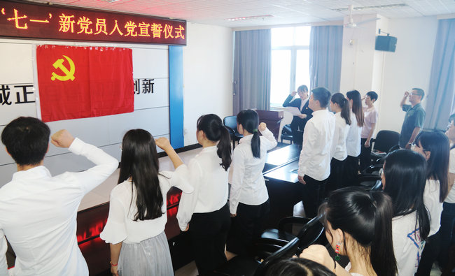 7月1日下午4:00,值中国共产党成立98周年之际,公司党委在主楼606室开展新党员入党宣誓及教育活动,隆重庆祝党的生日。公司党委书记杨天华、副书记王智金、全体员工党支部书记及全体员工党员参加。活动由王智金同志主持。活动在庄严的《国际歌》中启动,王智金副书记首先宣读了批准刘洁等31名同志为中共预备党员的批复。接着,由新党员代表财务161李琳领誓,全体新党员在党旗下进行了入党宣誓,老党员重温入党誓词。随后,...