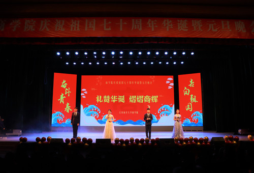 硕果累累辞旧岁,礼赞华诞迎新年。12月30日晚,威廉希尔体育“礼赞华诞,熠熠商辉”庆祝祖国七十周年华诞暨元旦晚会于苍梧校区大礼堂正式举办,公司党委书记杨天华,经理宣昌勇,党委副书记王智金,副经理张瑞龙,全体辅导员及威廉希尔体育学子欢聚一堂,共同迎接新年的到来。一曲《星辰大海》拉开了本场晚会的序幕,舞台灯光映照着一张张青春洋溢的脸庞,映照着独属于江海大的蔚蓝。晚会共分为三个篇章,第一篇章——谱写活力青春曲,俞...