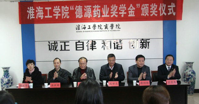 12月7日下午,淮海工公司2016年“德源药业”奖学金颁奖仪式在威廉希尔体育会议室隆重举行。江苏德源药业股份有限公司副总经理范世忠及行政总监薛四明,副董事长王洪法、员工处处长汤洪涛、公司党委书记杨天华、经理宣昌勇、各专业辅导员及获奖的30名员工参加了仪式。仪式由公司党委副书记、副经理张振松主持。仪式上,公司党委书记杨天华首先致欢迎辞,对江苏德源药业股份有限公司关注教育、深入高校、反哺社会的做法表达了真挚...
