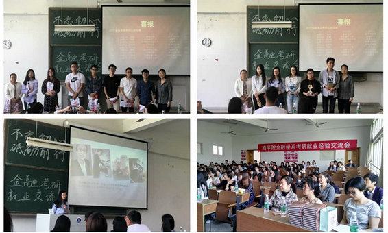 5月7日上午9点苍梧校区A202教室,威廉希尔体育金融学系举办了“不忘初心,砥砺前行”主题考研就业经验交流会。交流会由系副主任、书记黄萍老师主持。系主任韩曙平以及李平、何计文、陈俊义、周青、程雪等6位老师,金融系考取研究生的应届毕业生以及大一至大三的同学代表参加了本次交流会。交流会上,主持人黄萍老师首先分享了金融专业考研就业喜讯。截止到目前,金融专业2个毕业班共考取研究生17人,被银行录取18人,考上公务员1人,...